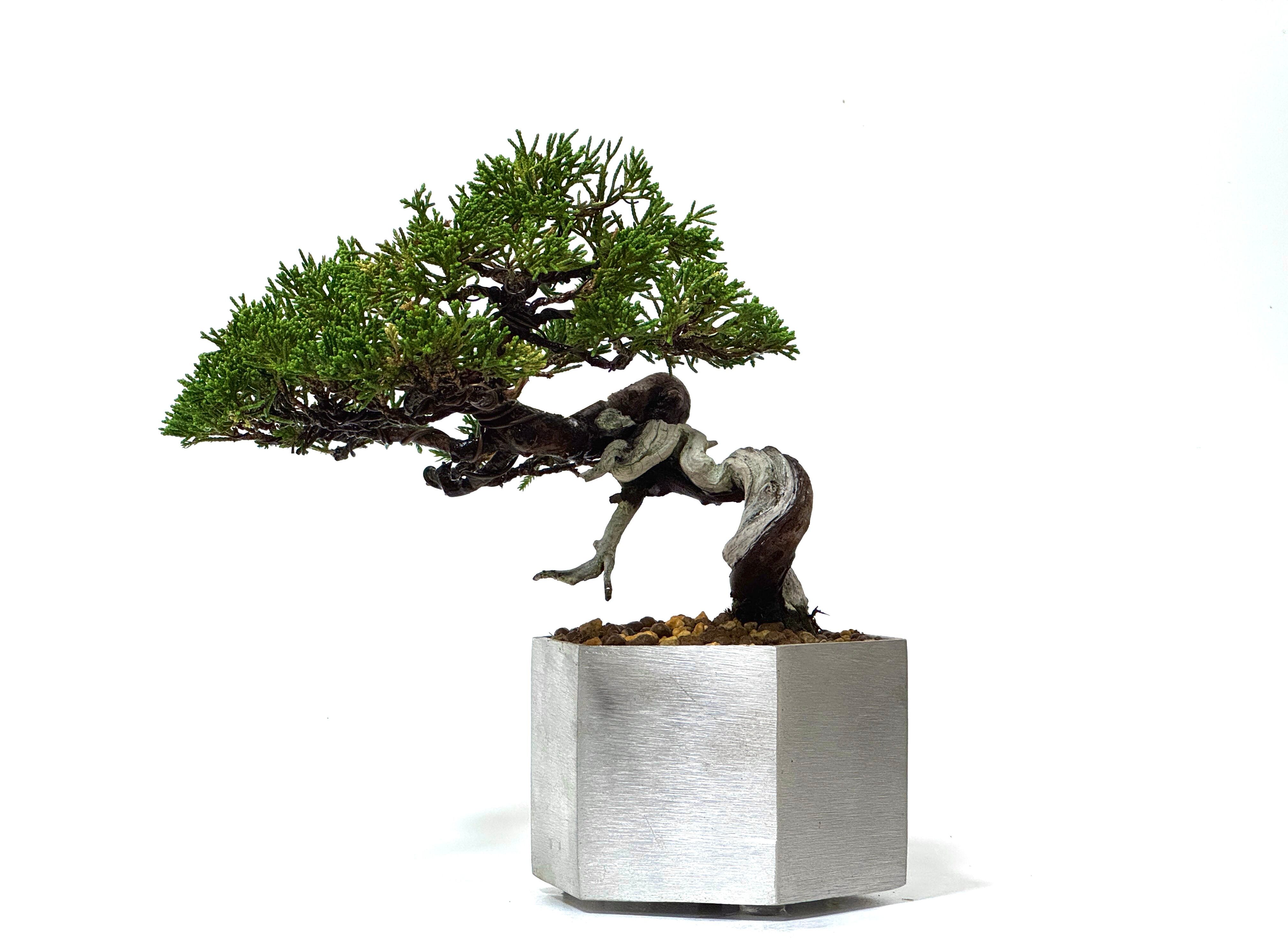 真柏(シンパク)は、盆栽の中でも特に人気の高い常緑針葉樹で、独特のシャープな樹形と繊細な葉が特徴です。白く枯れた幹(シャリ)や枝(ジン)が自然の風合いを際立たせ、力強くも優美な姿が和の空間に深みを加えます。剪定や針金掛けで個性的な造型を楽しめ、初心者から上級者まで魅了する盆栽素材です。四季を通じて楽しめる丈夫な品種です。